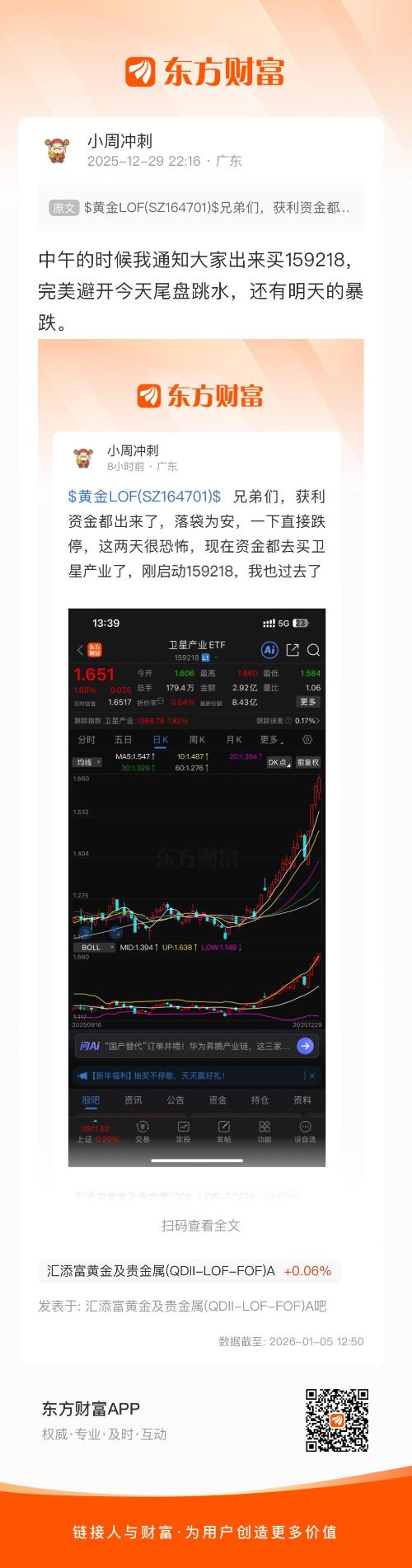 中午的时候我通知大家出来买159218,完美避开今天尾盘跳水,还有明天的暴跌。