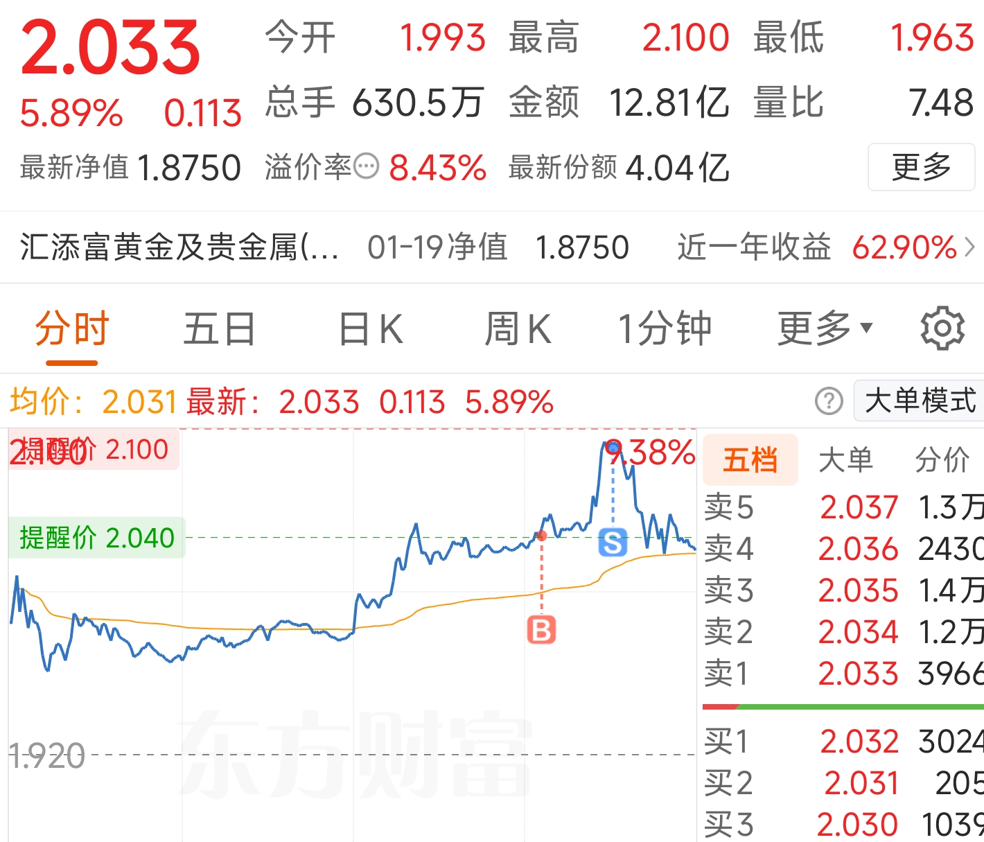 $黄金LOF(SZ164701)$ 最高点刚好在提醒价,要是没设置,没及时来卖掉,今天估计就要亏了。降息和关税的情绪不知道能持续多久,会不会卖飞了。
