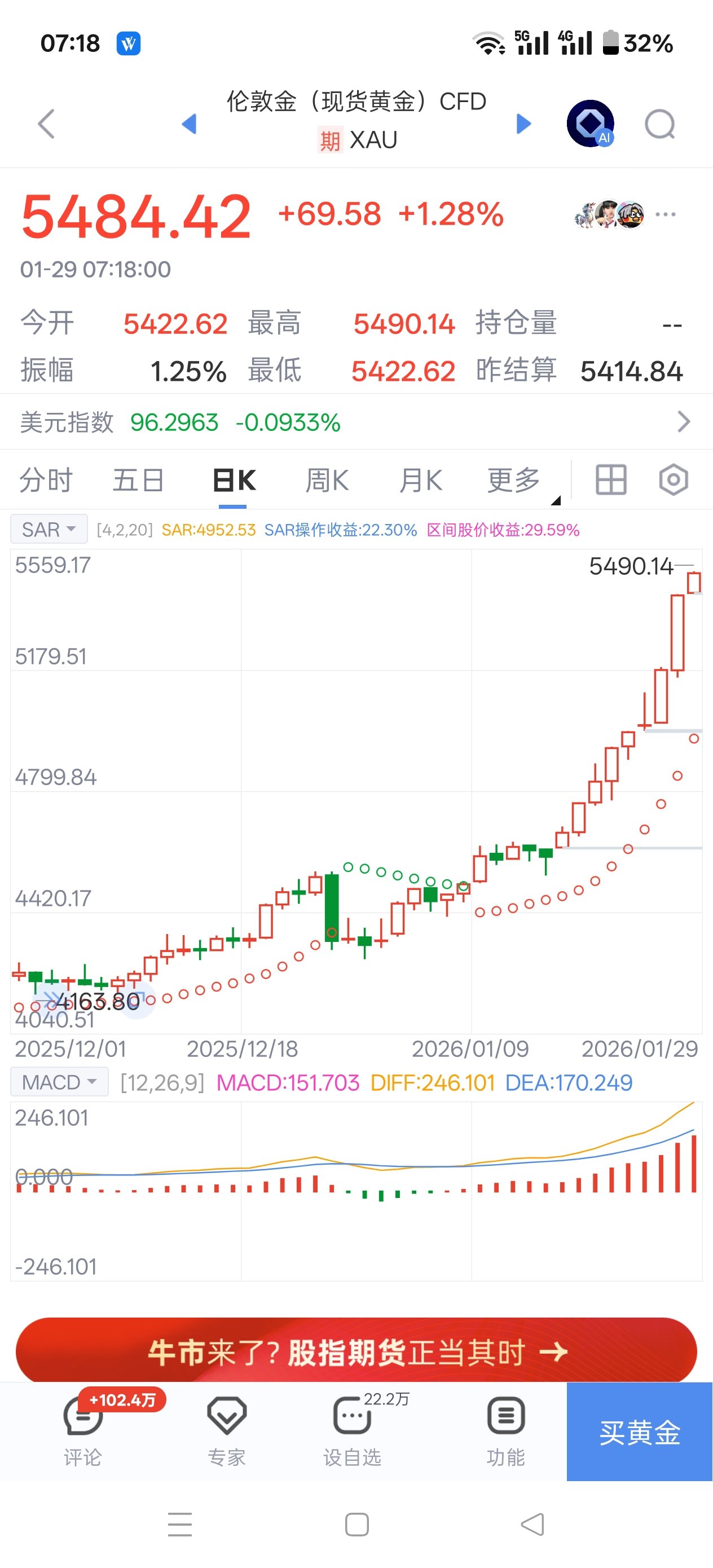 牛逼,黄金5500美元了,今天开盘不得直接涨停了?没涨停,最少五个点开
