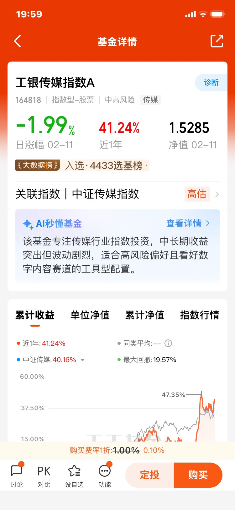 第一,产品定位与便捷性。 这一点非常直接。对于像我这样看好传媒板块长期发展,但又不知道具体该选哪只股票,或者担心押错宝的投资者来说,工银传媒指数A就是一个“打包”解决方案。买入它,就等于按指数权重比例持有一篮子传媒行业上市公司,省去了选股的烦恼,实现了对传媒细分领域的便捷布局。A类份额适合打算长期持有的投资者。