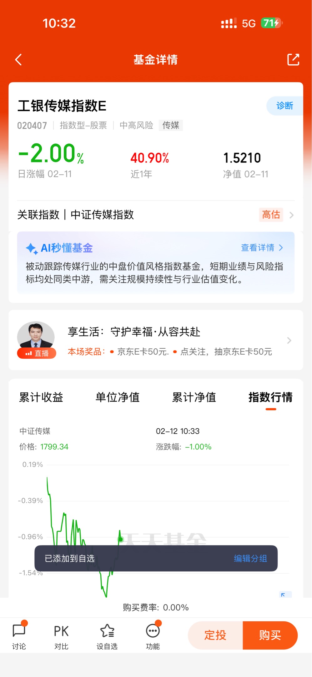 工银传媒指数A采用完全复制法紧密跟踪中证传媒指数(399971),覆盖游戏、影视院线、广告营销、数字媒体等全产业链龙头企业,一键打包板块核心资产。基金保持高仓位运作,跟踪误差控制优异,能精准反映板块整体表现。LOF结构支持场内场外双交易,兼顾长期配置与波段操作,A类份额费率低廉,长期持有更具成本优势。