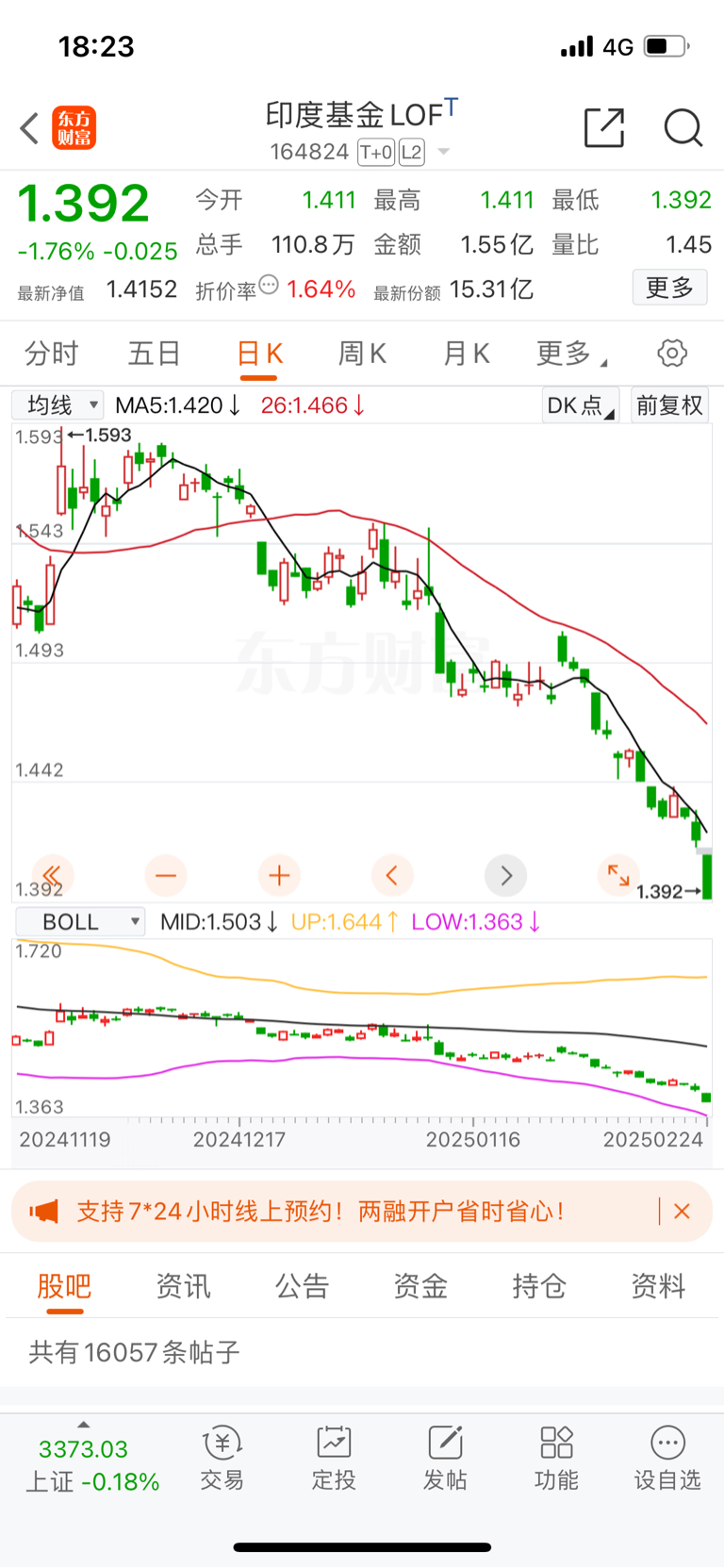 $印度基金LOF(SZ164824)$ 左侧交易赚钱的逻辑是:你的持有仓成本为起始点,反弹涨到26日红线处,有人抄底直接重仓套牢了,这不纯亏,还不如右侧交易呢。