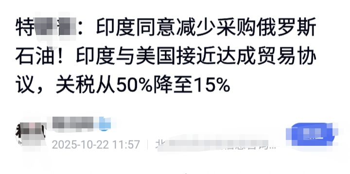 最近印美快谈成贸易协议了,把印度出口到美国的关税从50%大降到15%-16%,这对印度股市是大好事。
