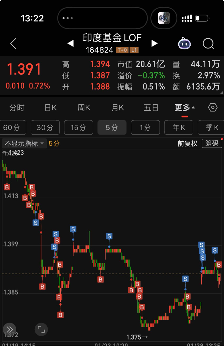 $印度基金LOF(SZ164824)$ 今天分时跳水了,又把卖出的份额加上了。周线月线有点高,割也只是随便玩玩。