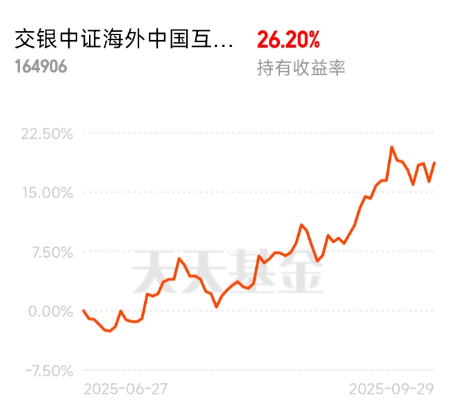 $交银中证海外中国互联网指数(LOF)A$ 目前还不错,有26个点收益!