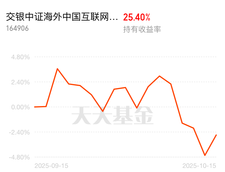 海外互联网最近也是l连续上涨了,可以长期投资起来的$交银中证海外中国互联网指数(