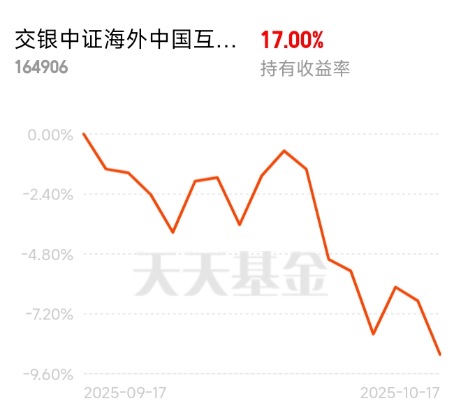 $交银中证海外中国互联网指数(LOF)A$ 最近回调了很多,互联网价值凸显,可以逢低关注了