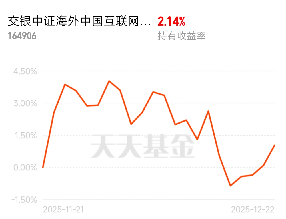 这款交银中证海外中国互联网指数(LOF)A,紧紧跟着海外中国互联网指数走,方向一