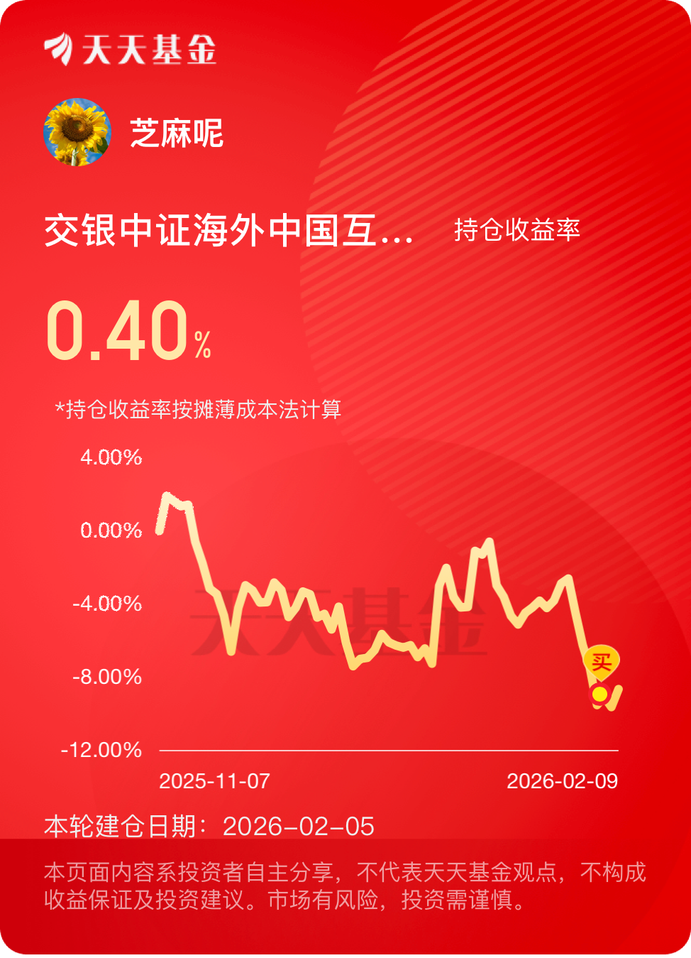 我觉得中概互联板块的成长性强,行情不会就结束了,看好后市$交银中证海外中国互联网