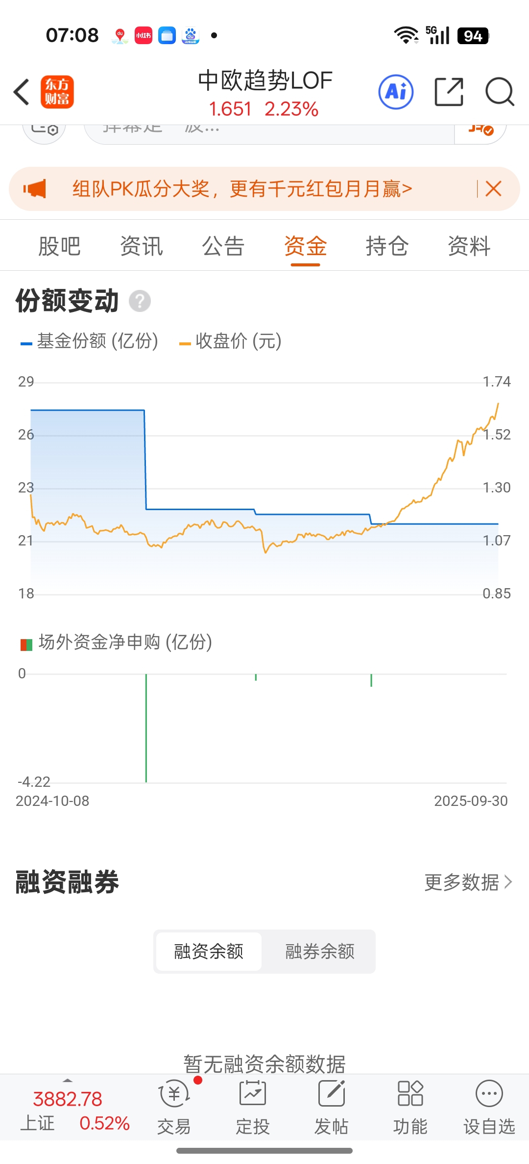 $中欧趋势LOF(SZ166001)$ 此基低调,资金份额不断流出减少,而我买入两个月,已浮盈34.15%,满意!很多人认为技术分析只能用于股票市场,但我认为也可以用于基金大波段分析,而且非常见效,获益良多!