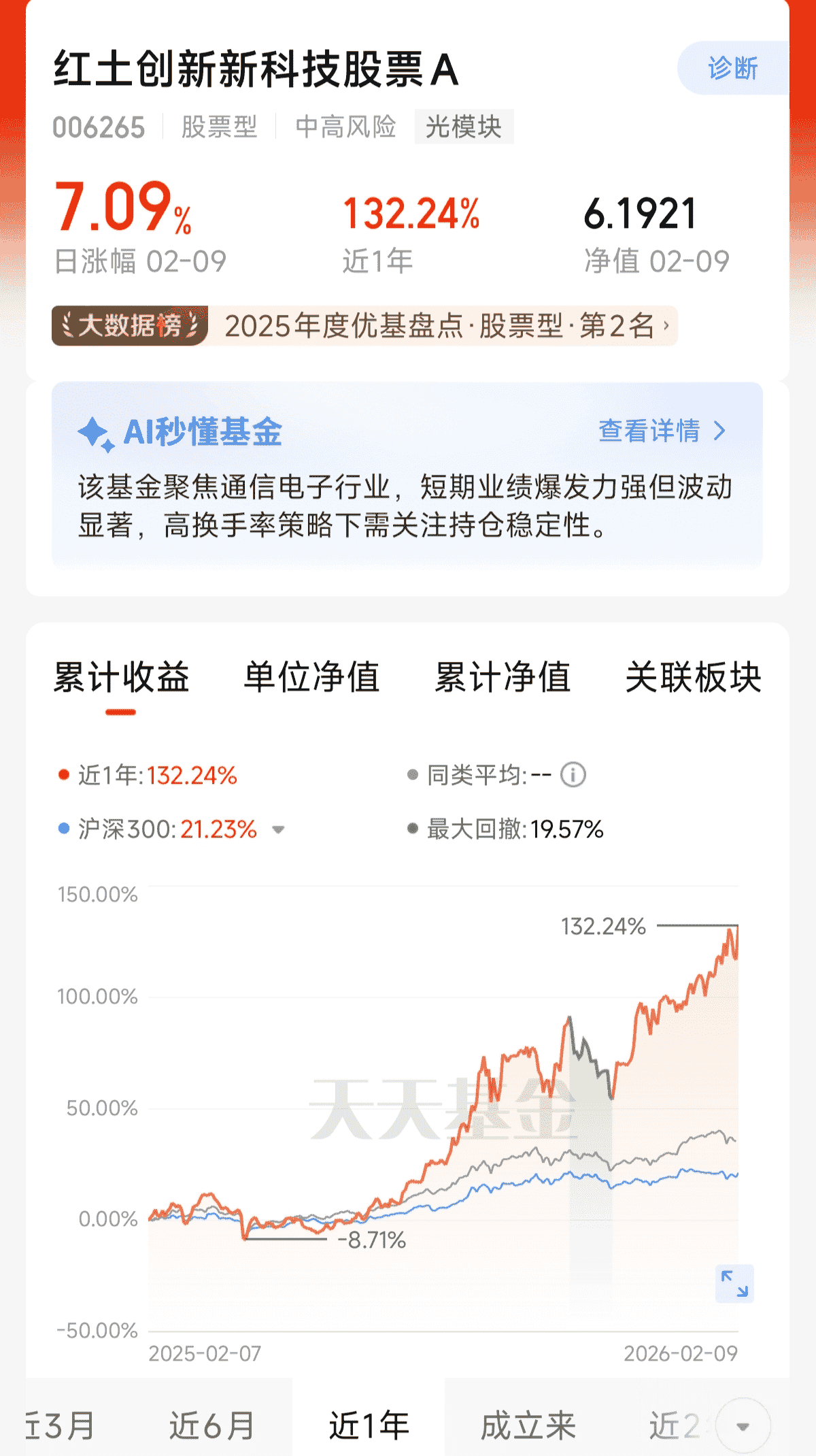 今天市场情绪真的回暖了,光模块里面大票小票一起涨。我手里的红土创新新科技A净值直接上涨7.09%,这节奏挺好。之前震荡的时候没卖,看来是对了。$红土创新新科技股票A(OTCFUND|006265)$$红土创新新科技股票C$