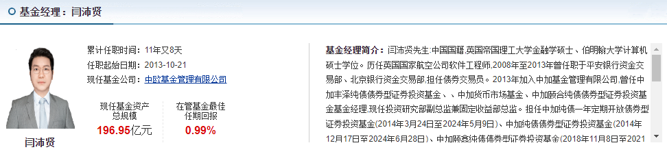 基金经理闫沛贤先生凭借其深厚的金融背景和丰富的投资经验,已经成功带领多个债基产品在波动中平稳运营。