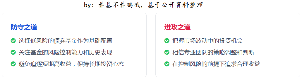 与此相似,基金投资尤其是债基的操作也非常讲究“攻守平衡”。债券基金投资的“攻”与“守”可以类比为橄榄球中的进攻与防守。我们既需要在市场行情好的时候“进攻”,实现资本增值,也需要在市场不景气时进行“防守”,保持基金的稳健性和抗跌性。