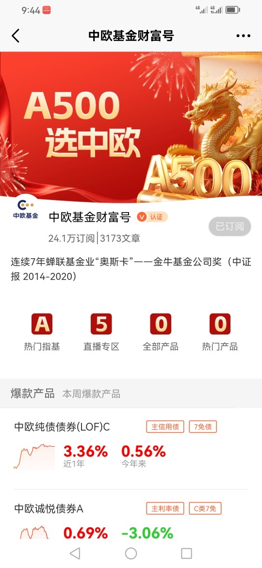因此我同时布局了中欧纯债债券(LOF)C(166016)与中欧医疗创新股票C(006229),因为今年以来,它们的业绩明显处于同类基金产品的前列,所以我相信它们可以带给我稳稳的幸福。@中欧基金