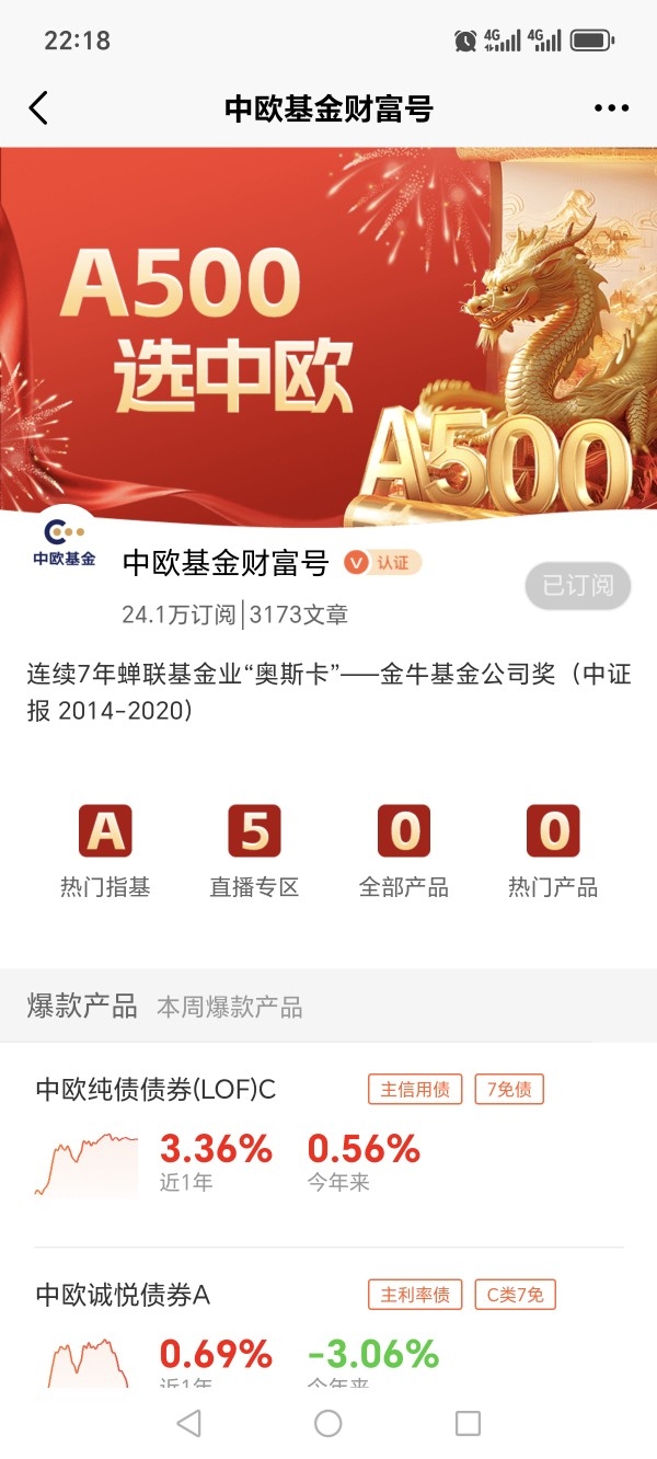 所以我的股债平衡策略对应的两个核心产品就是中欧纯债债券(LOF)C(166016)与中欧医疗创新股票C(006229),因为中欧基金是很多投资者心目中的投资理财好帮手,而且中欧基金在投资领域相当的专业。@中欧基金