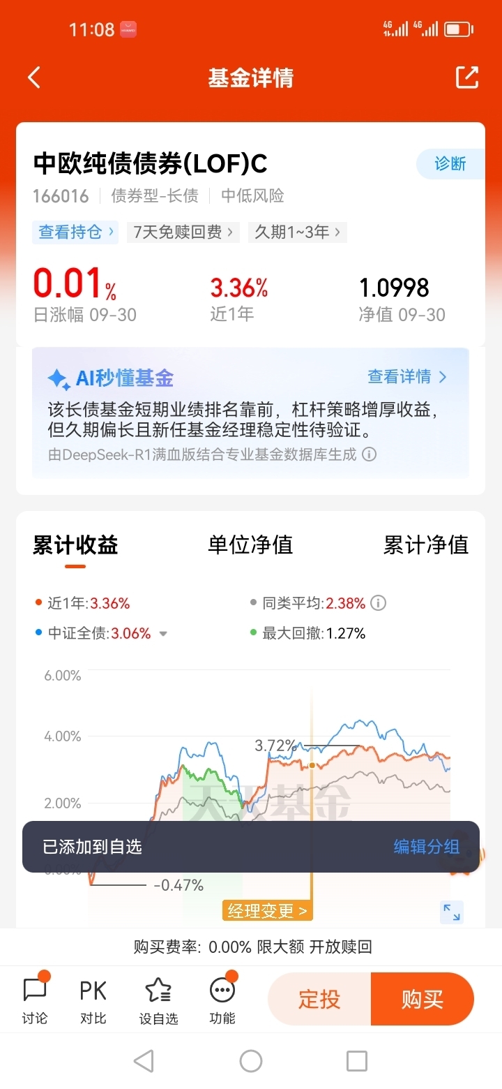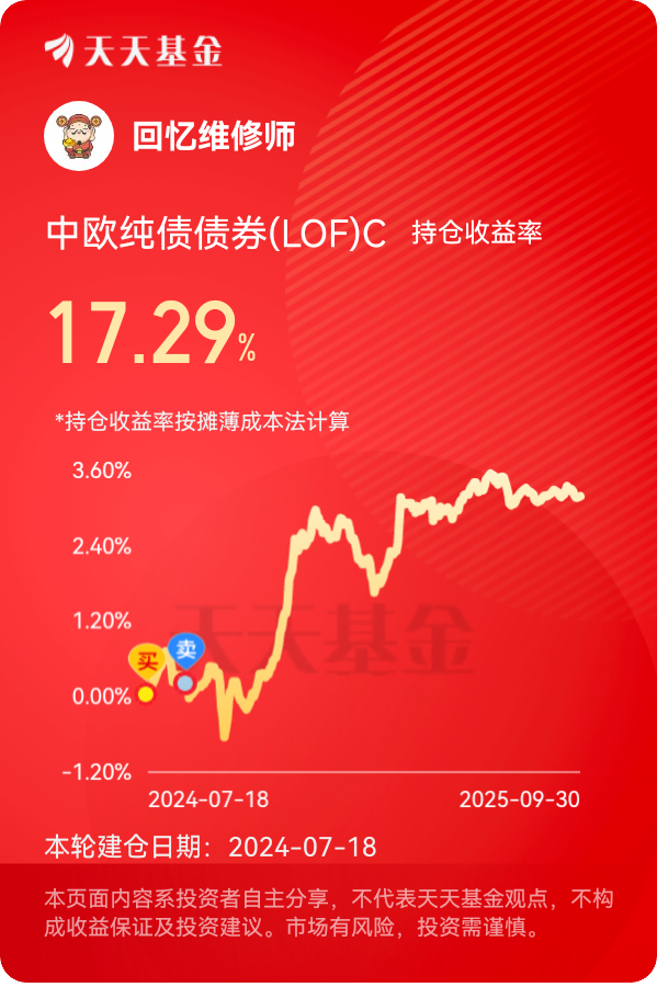 综上所述,我拥抱了中欧纯债债券(LOF)C(166016)与中欧医疗创新股票C(006229),这种双核组合我相信在未来的表现一定会大放异彩的。@中欧基金