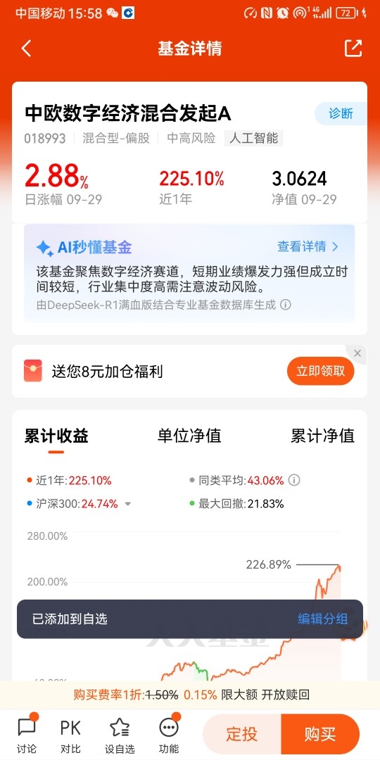 所以,在牛市里配置适当仓位的债基是我的选择!$中欧纯债债券(LOF)C$ 是我看好的债基,再搭配适当的科技主题基金$中欧数字经济混合发起A$ ,做到能攻能守,这就是我的攻守道!