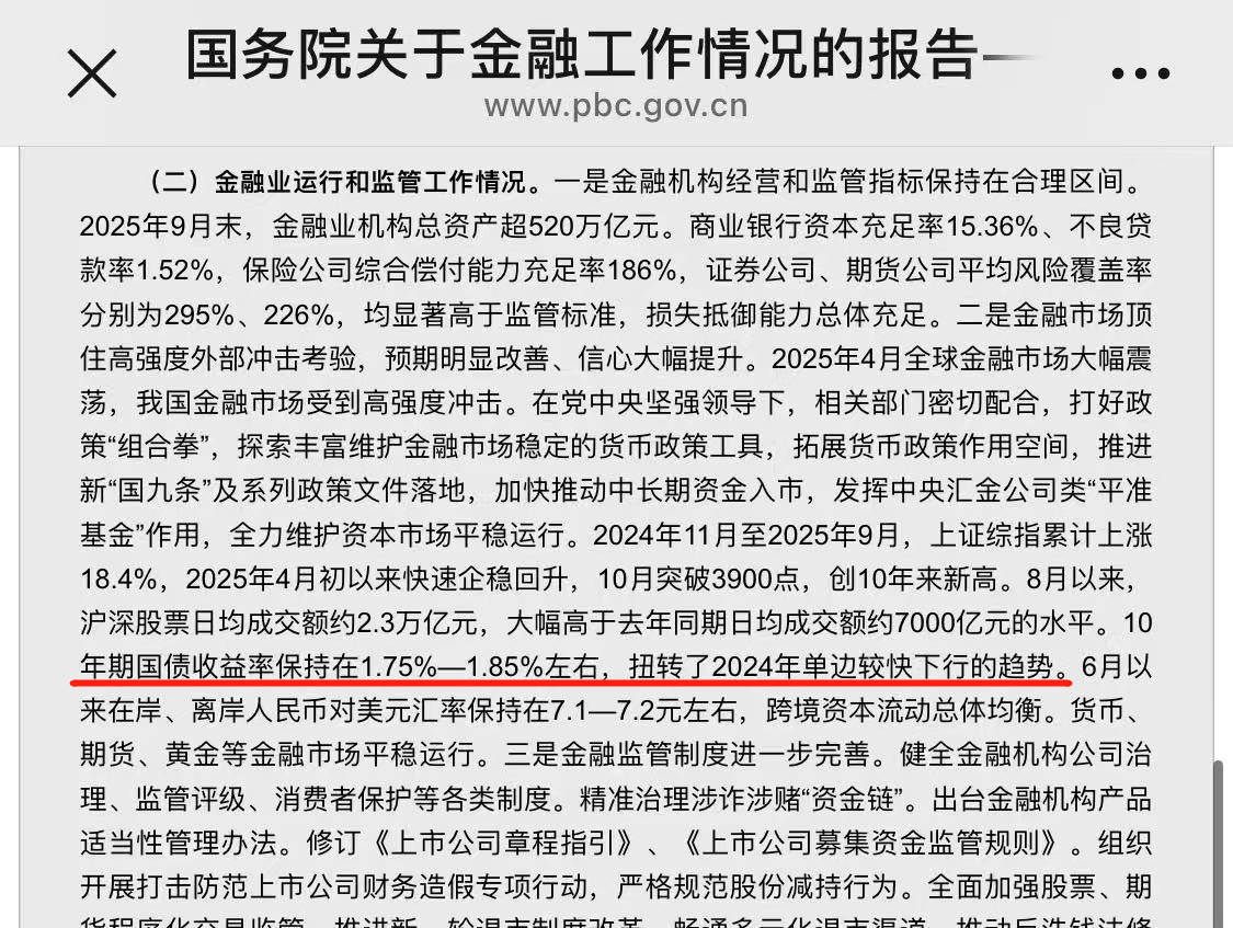 前天央妈官网发布了国务Y关于金融工作的报告,其中对10年期国债收益率有这么一句表述: