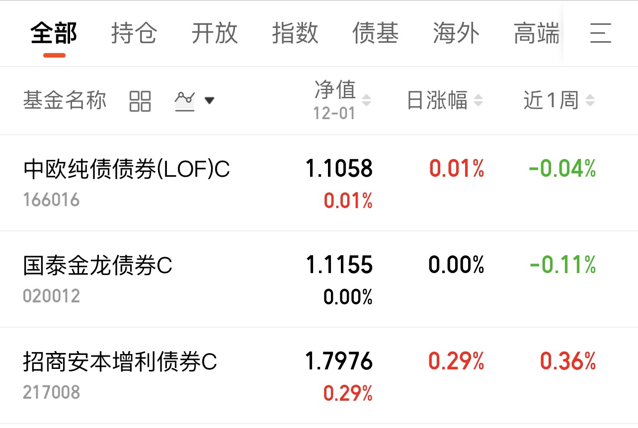 $中欧纯债债券(LOF)C$ 昨收1蛋