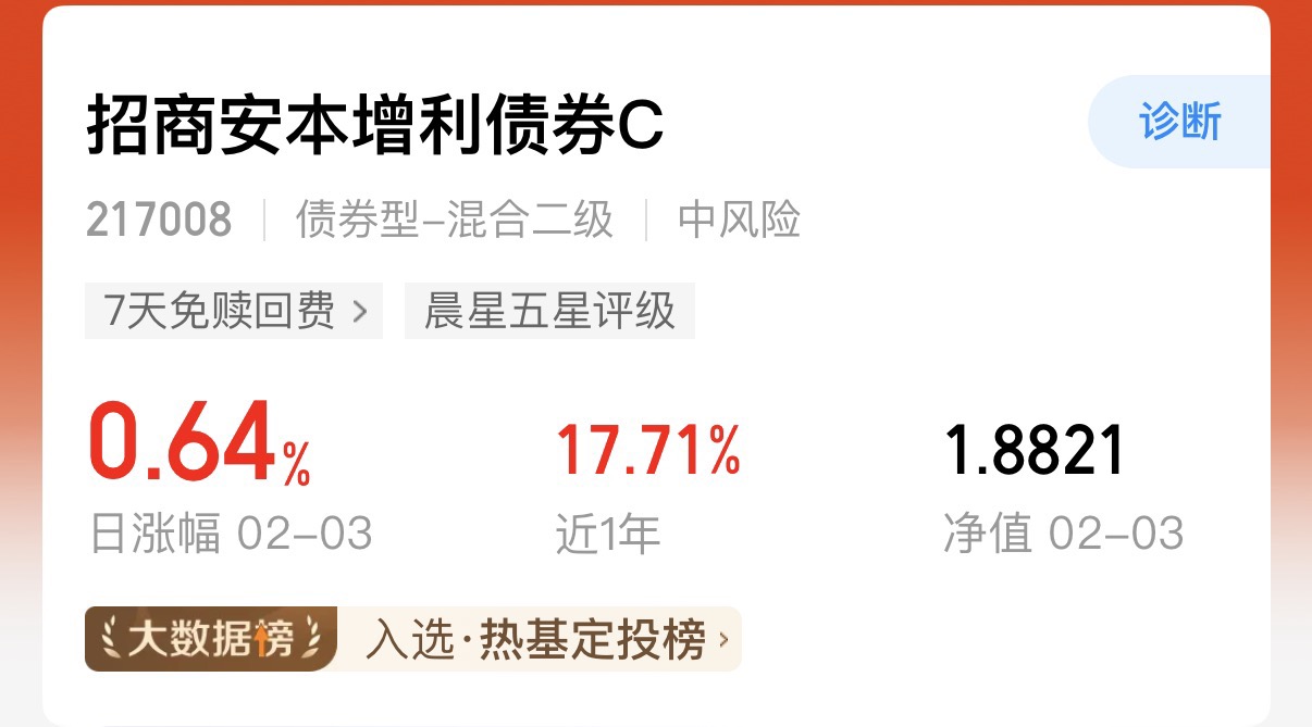 这两天的市场是有一点震荡的,不过我发现今天又开始慢慢稳起来了,昨天我看固收的就很不错$招商安本增利债券C$ 昨天又收了64个蛋,这个收益真的比纯股票来的还要快呀