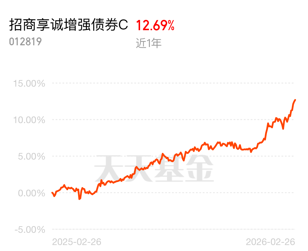 数据证明实力,稳健创造收益。招商享诚增强债券 C 昨日涨幅 0.21%,今年以来 5.41%,近一年涨 12.69%、回撤仅 1.9%,固收 + 里的实力派,当下位置合适,做底仓继续布局。$招商享诚增强债券C$