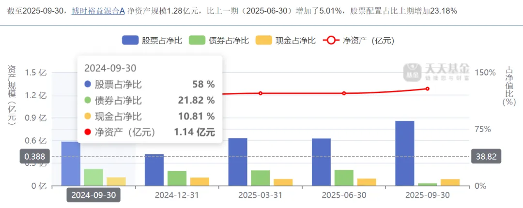 通过灵活调整权益仓位和精选个股,博时裕益的股票配置比例从此前的60%逐步提升,三季度已达85%。