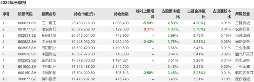 在周期品领域,他布局供给出清、需求稳定的有色、能源、运输等板块,如洛阳钼业等;