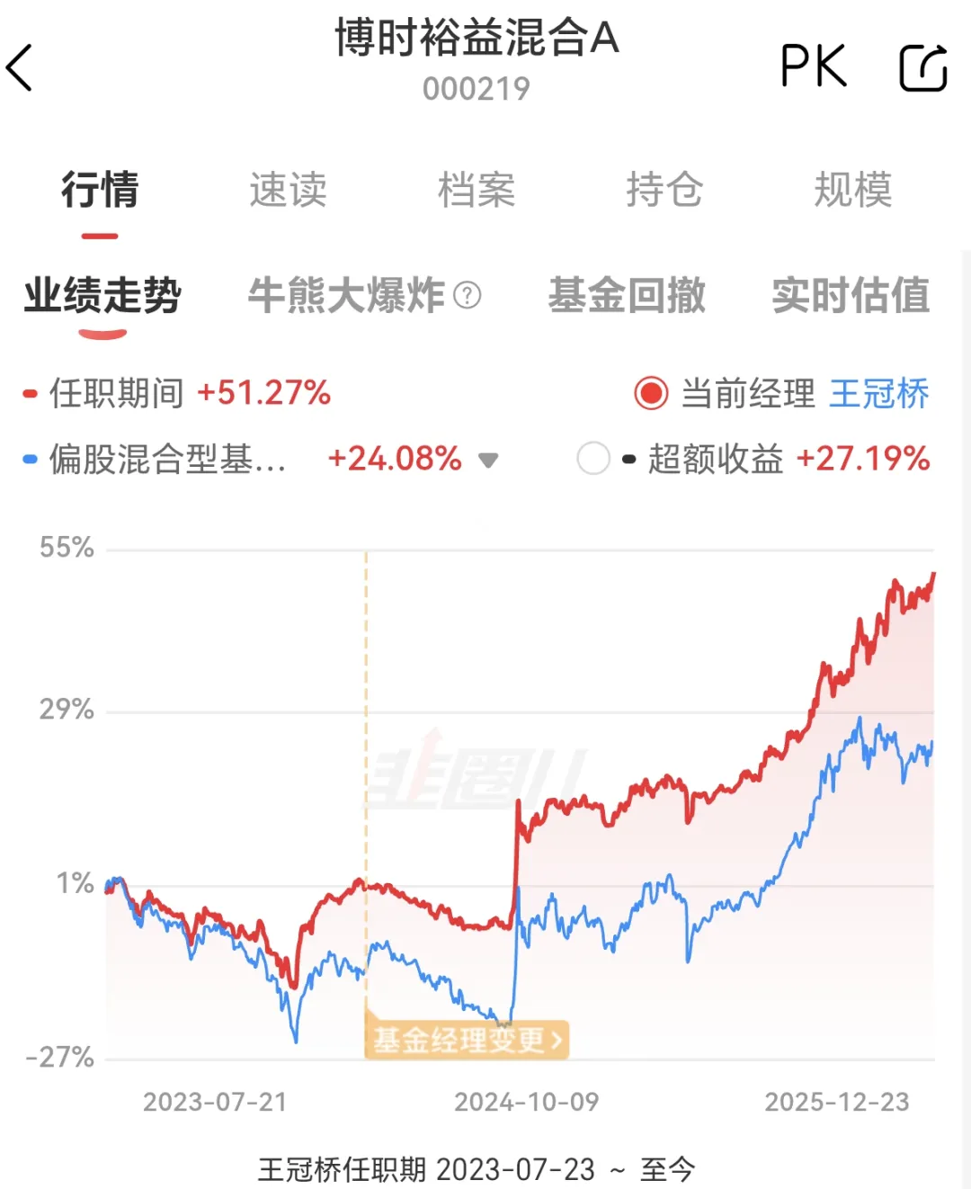 王冠桥是我很早就想介绍的一位基金经理。他研究汽车行业出身,2023年7月开始管理博时裕益,任职以来收益51.27%,大幅超越偏股混合基金指数。