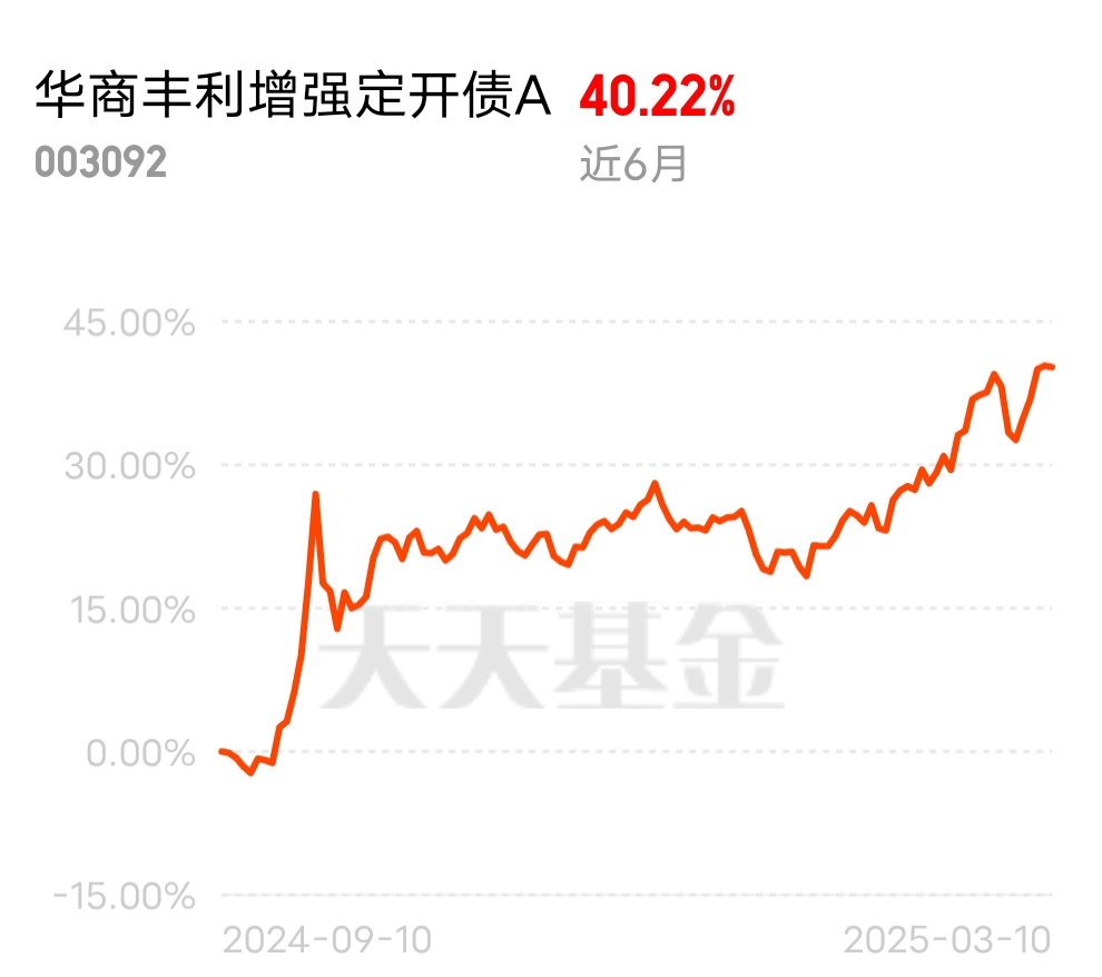 看看这个华商丰利固收产品半年涨了40多个点,要比好多权益产品都强,已上车等肉吃
