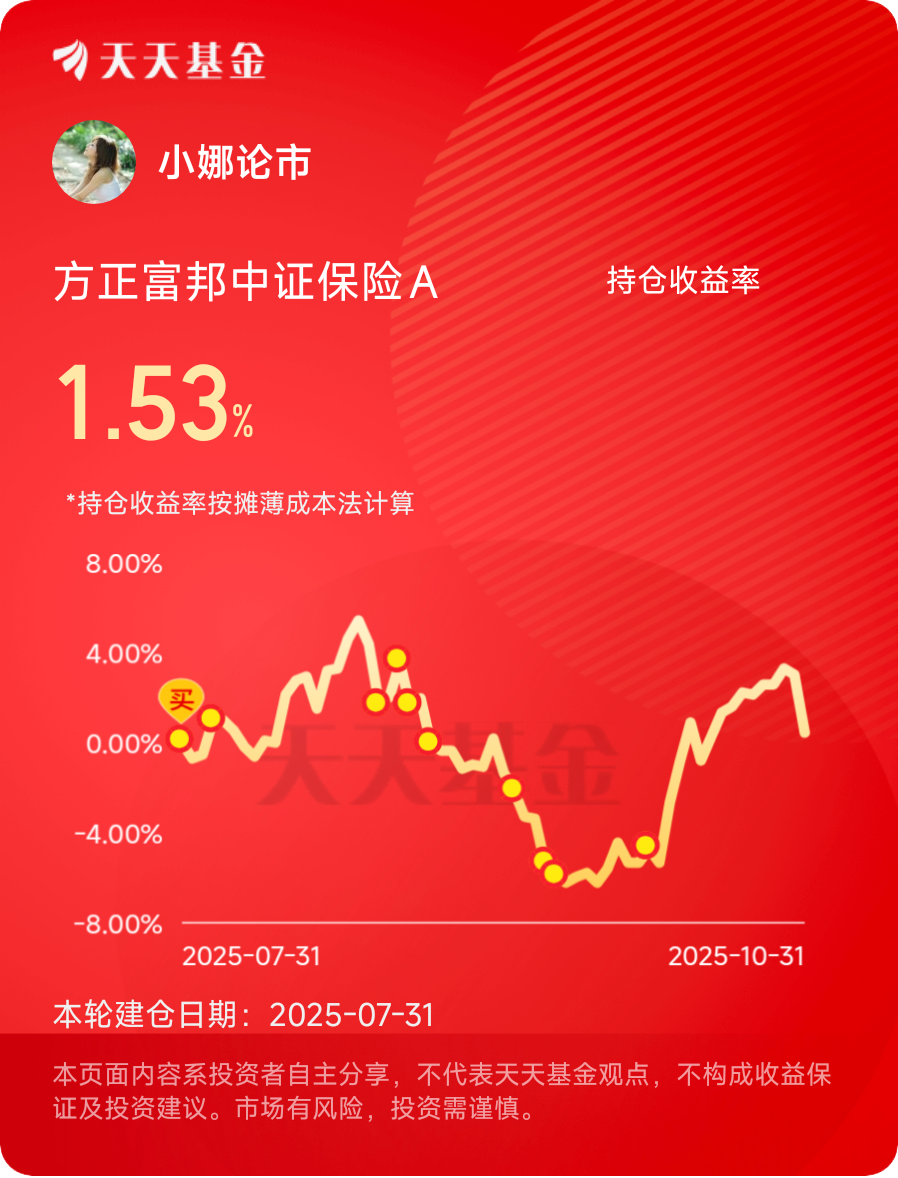 #晒操作# 中国保险密度才美国1/5,长坡还很长,现在中国人均保费4197元,美国2.1万元!老龄化+储蓄搬家,未来10年需求翻番,赛道足够长,不怕没增长!$方正富邦中证保险A$ #晒收益#
