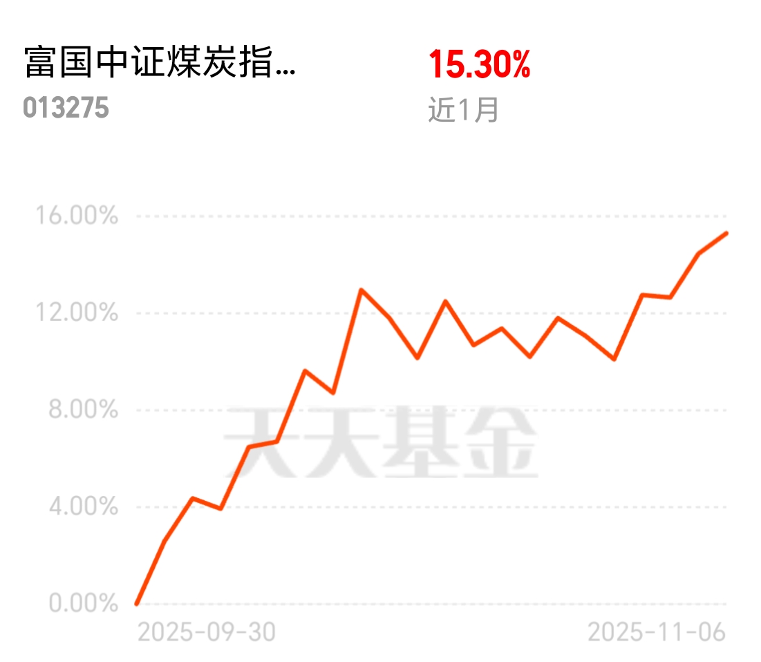 当前配了点富国中证煤炭C,顺周期+央企煤炭+中特估逻辑挺顺,近1月涨14%,跟踪误差才0.45%,跟指数几乎同步,重仓神华、陕煤这些硬核资源股,拿得住。$富国中证煤炭指数(LOF)C$