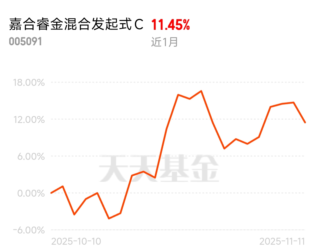 现在基金市场里,科技相关的品种收益都很可观,CPO和存储芯片更是领头涨。嘉合睿金混合C就主打这俩领域,近1个月涨11.45%,一个月15个点左右,想快速获利的可以考虑。
