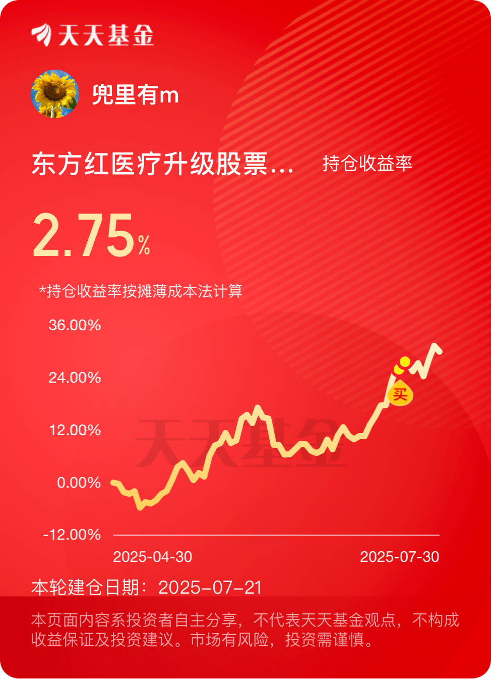 医药板块总体表现不错的,东方红医疗升级C最近业绩不错的,近一年涨幅94.72%,可以继续逢低布局...$东方红医疗升级股票发起C$ #晒收益#
