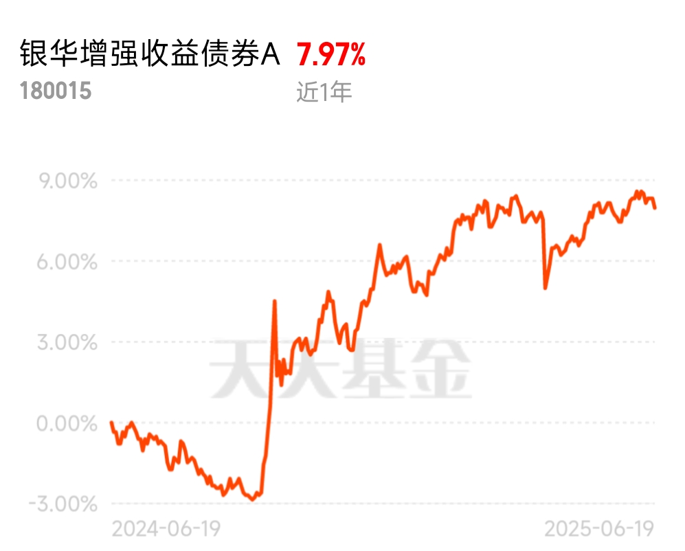 不敢贸然进入股市,这种固收+产品就很合我心意,稳健和成长兼顾,收益波动都在可接受范围,爱了 $银华增强收益债券A$