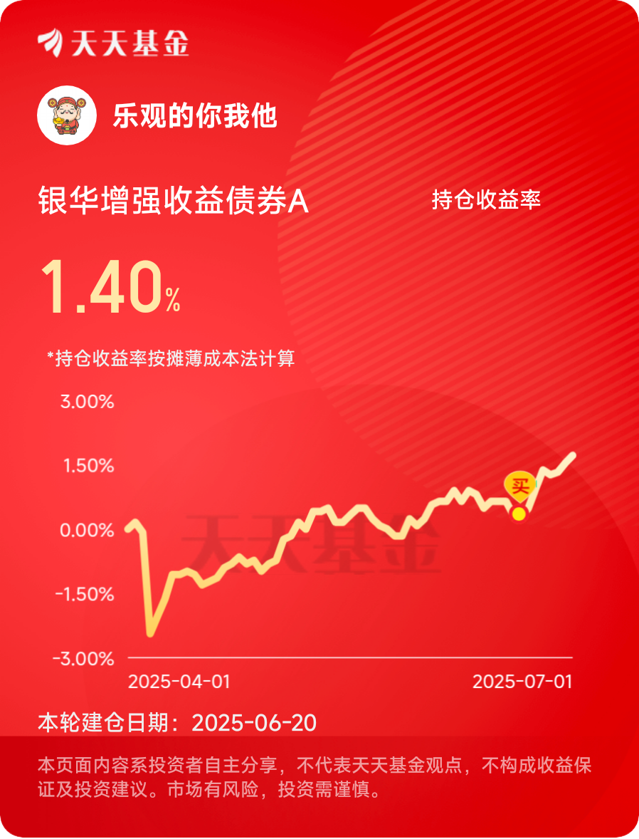 银华增强收益债券基金,专业团队操盘,收益有保障。债券基金风险小,适合稳健型投资者。#晒收益#