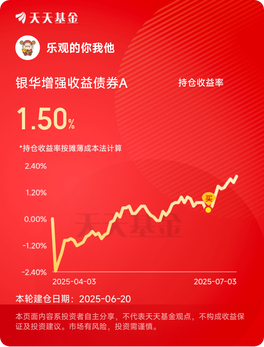 银华增强收益债券,专注债券市场,收益稳中求进。债券基金,流动性好,投资理财更灵活。#晒收益#