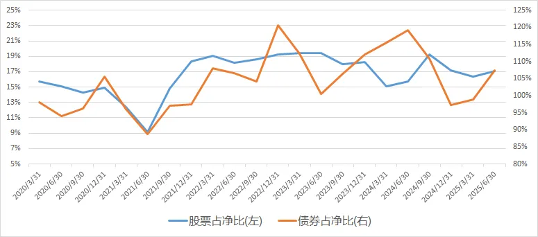 比如2024年8-9月,冯帆得到了边际上可以对权益类资产更加积极的信号,银华增强收益债券3季度小幅降低债券持仓,将股票持仓调升至19.24%,接近顶格配置(基金合同规定股票持仓不超过20%),充分把握了9.24行情。2024年4季度至2025年2季度,该基金小幅减持股票,保持一定的权益资产敞口分享震荡上行行情,同时进一步降低债券持仓,规避债市调整。