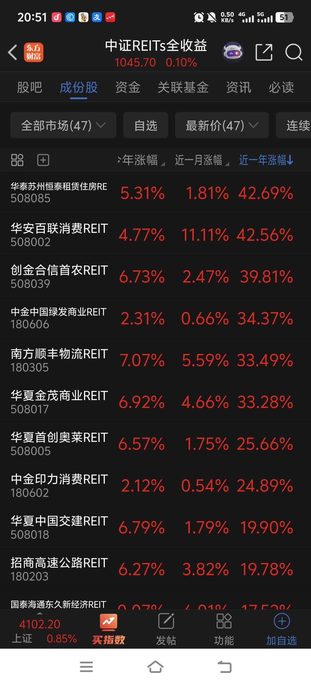 $华夏合肥高新REIT(SZ180102)$ ————————有的近一年涨幅也不少!自己炒股还赚不到!