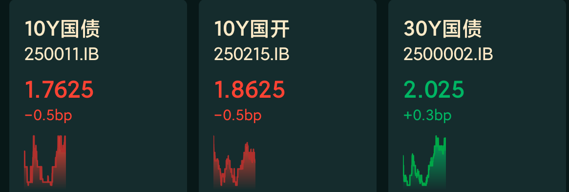 十年期国债收益率:1.7625%,-0.5BP(国债收益率越跌,债市越涨)