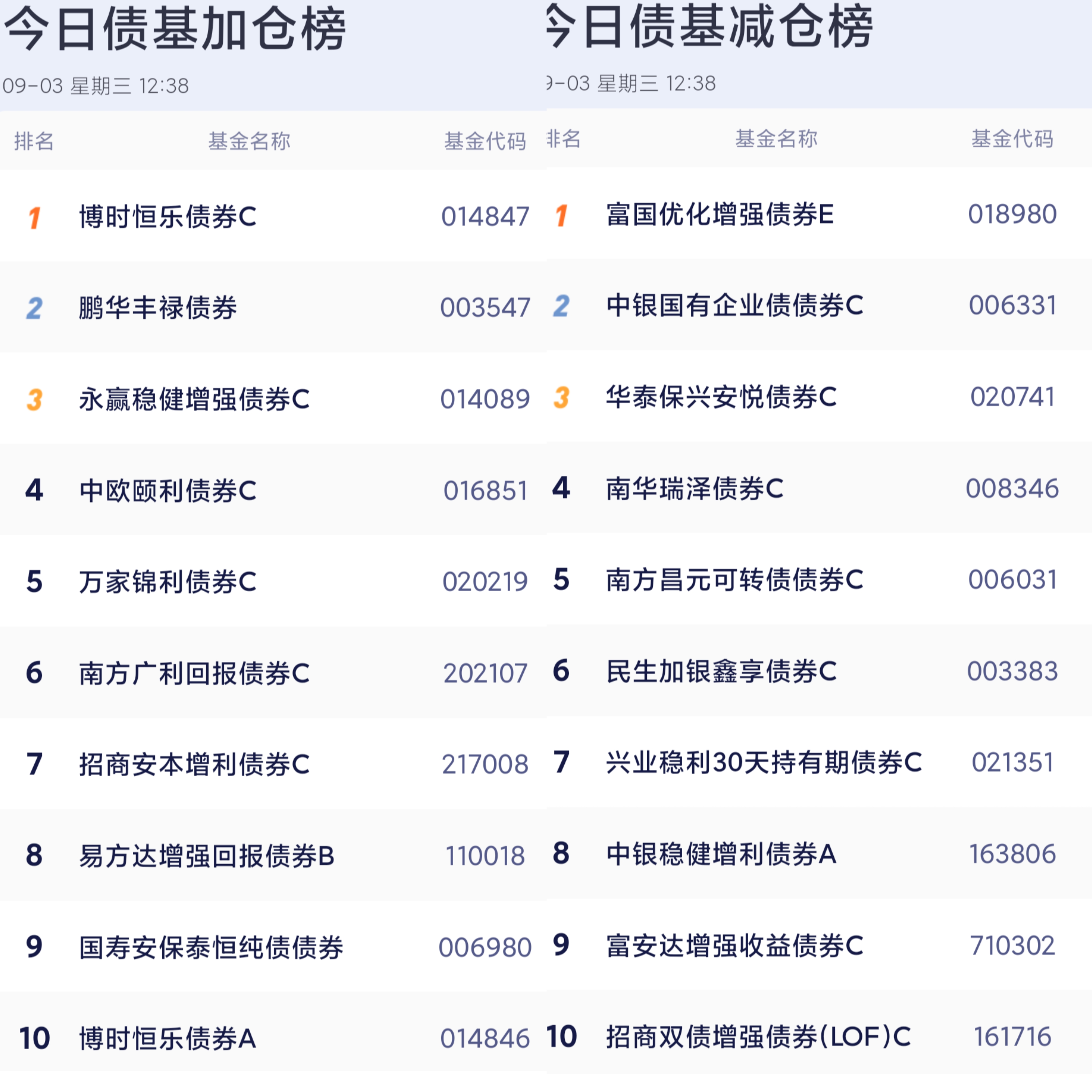 六、债券基金加减仓榜单