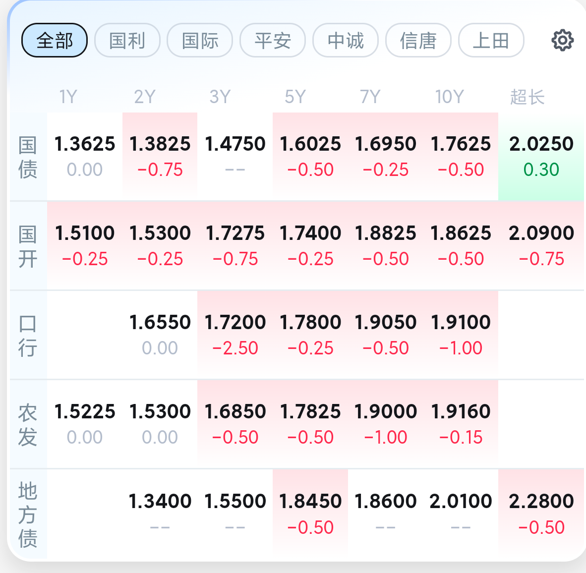 A股早盘走弱,上涨指数翻绿0.96%,债市小幅回暖,银行间主要利率债收益率多数小幅下行,信用债也是晴天。