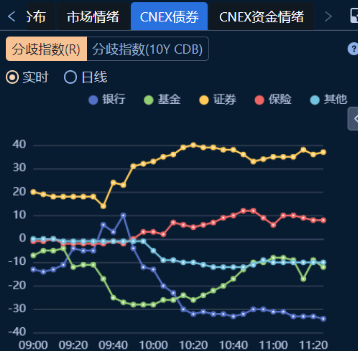 债券分歧指数显示,证券为买债主力,银行、基金均为卖出趋势。