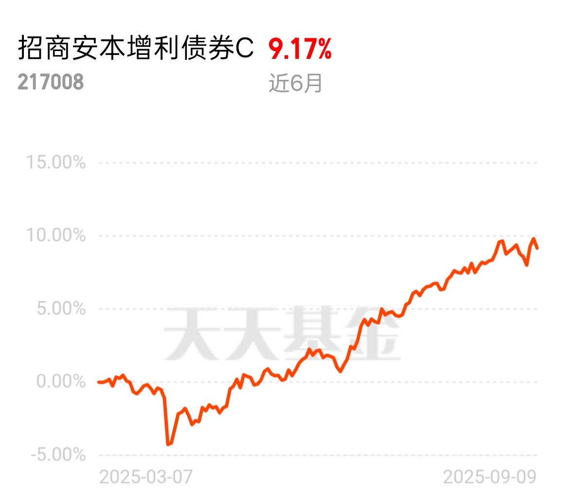 理财抛售短债基引发连锁反应,固收 + 获避险资金。招商安本增利债券 C 近三月 6.76%,近一年 22.55%,资金吸引力强。$招商安本增利债券C$