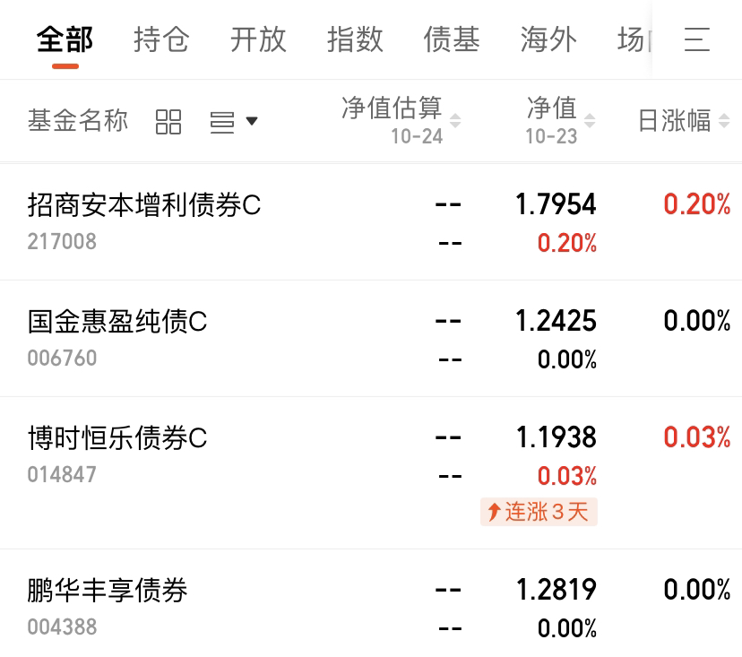 债券市场昨日冲高回落,我认为可能出现债基集体碎蛋,但是我惊喜的发现$招商安本增利债券C(OTCFUND|217008)$昨天收了20个蛋,真的很惊喜。还要$博时恒乐债券C(OTCFUND|014847)$也收了3个蛋。