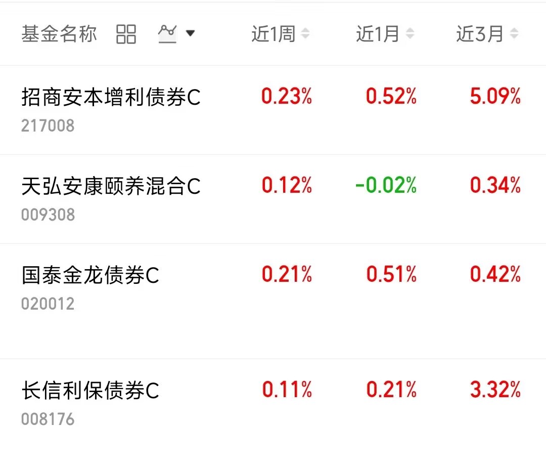 今天上午海峡两岸板块领涨,银行板块接着护盘,但 A 股还是小幅回落,创业板跌超 1%。震荡行情里,仓位配置很关键,靠固收打底+权益增强策略,能攻能守。$招商安本增利债券C(OTCFUND|217008)$、$天弘安康颐养混合C(OTCFUND|009308)$、$国泰金龙债券C(OTCFUND|020012)$和$长信利保债券C(OTCFUND|008176)$对比后,我选择招商安本近一周23个蛋,还有国泰金龙也考虑。