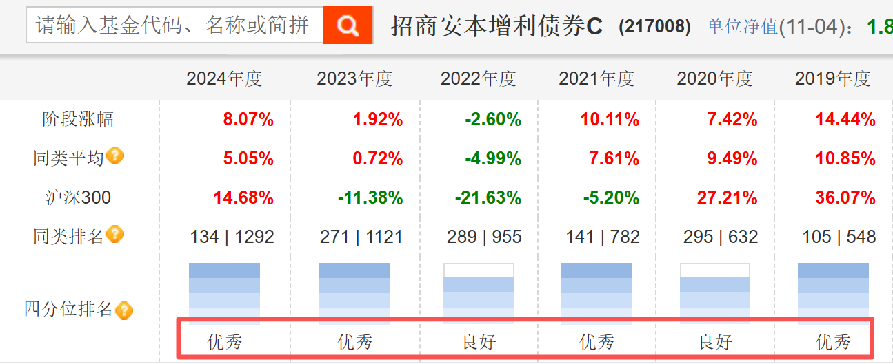 也就是说,招商安本增利债券C不仅今年涨得多,而是长期业绩稳定优秀。