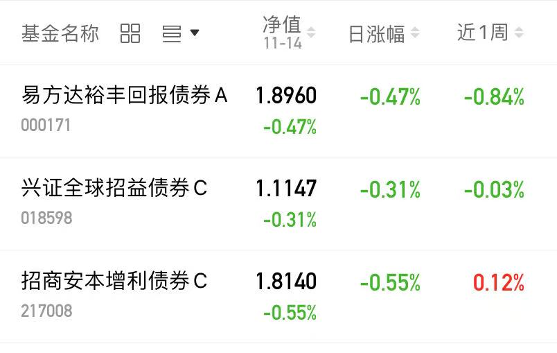 易方达裕丰回报债券A 近一周收益 -0.84%