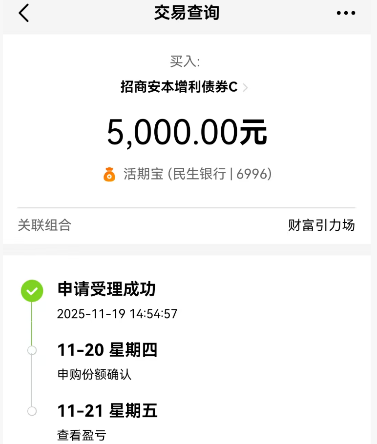 趁大A下跌带动二级债基回调,是一个逐步减仓,摊薄成本的好时机,我本周继续加仓一笔招商安本增利债券C,这是我本月第3次加仓,累计持仓1.5W,坐等股债企稳反弹~