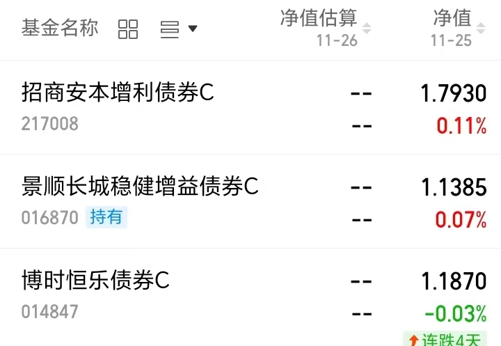 $景顺长城稳健增益债券C(OTCFUND|016870)$昨天收7个蛋;