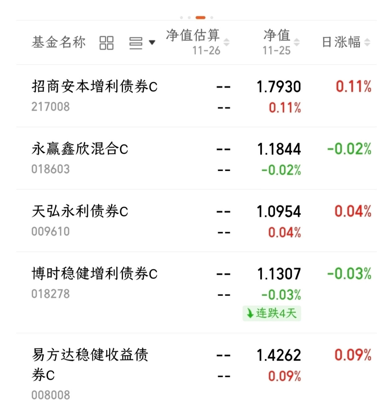 昨天股市挺争气的,连续几天往上走,我手里的几只债基也跟着沾光了。虽然债市整体不太行,但混合债基还是吃到了一波红利。